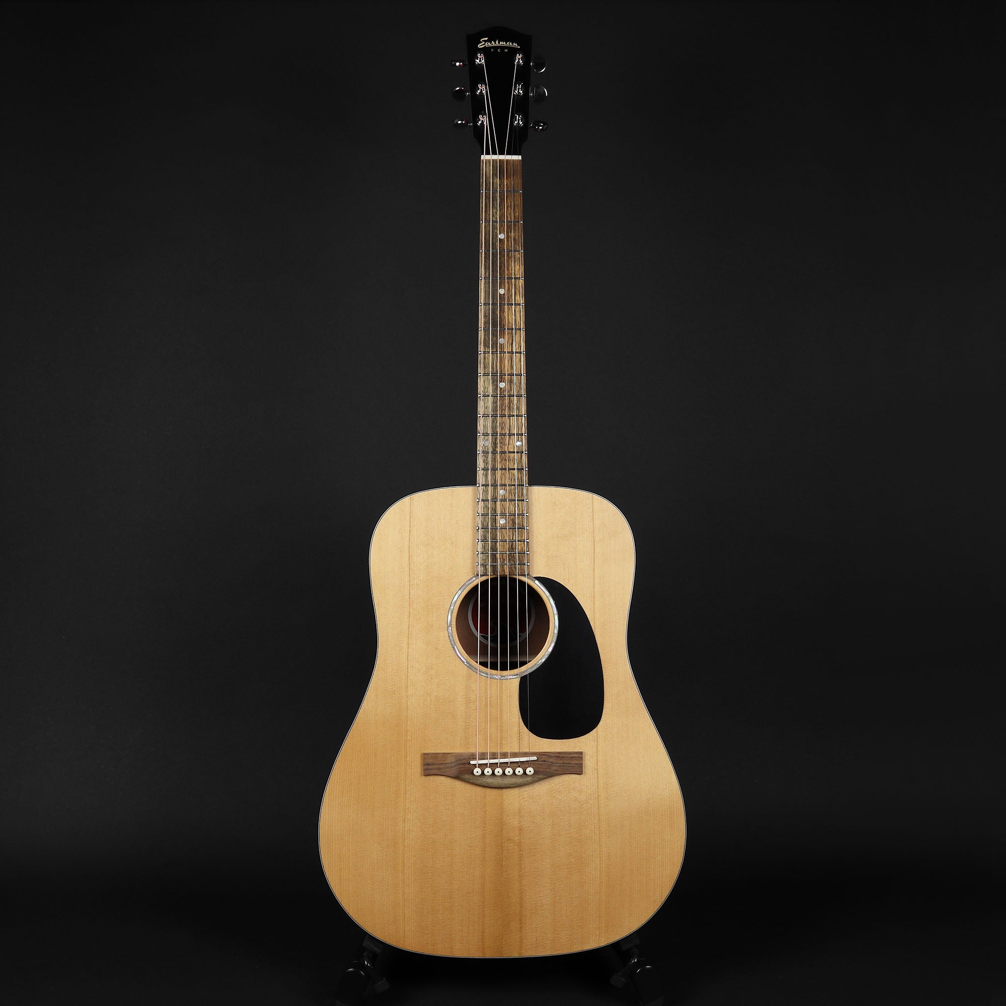 Outstanding value solid top acoustic from Eastman. The Eastman PCH-1 Series Dreadnought guitar features a solid sitka spruce top, laminate sapele back and sides, ovangkol fingerboard/bridge and a bone nut and saddle.