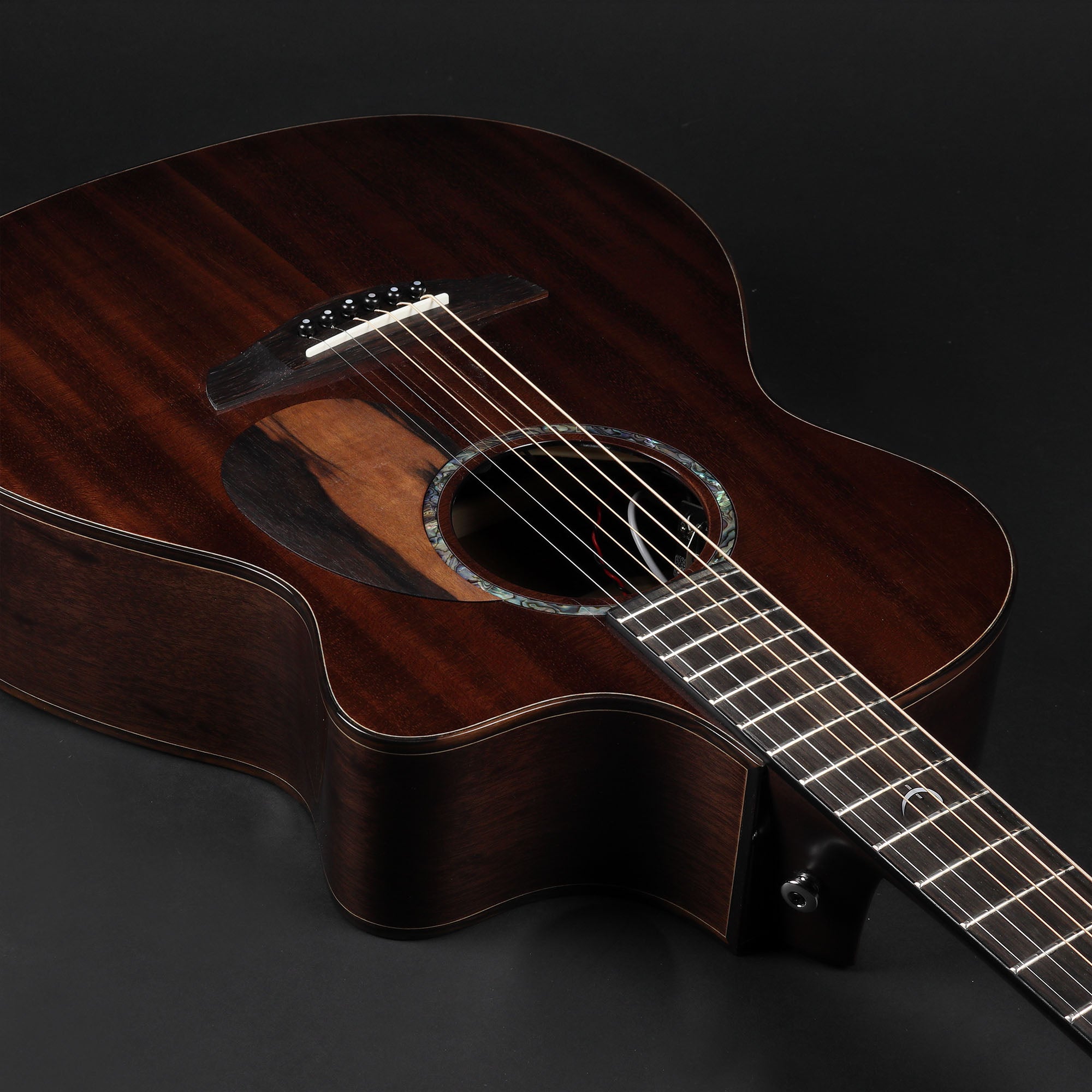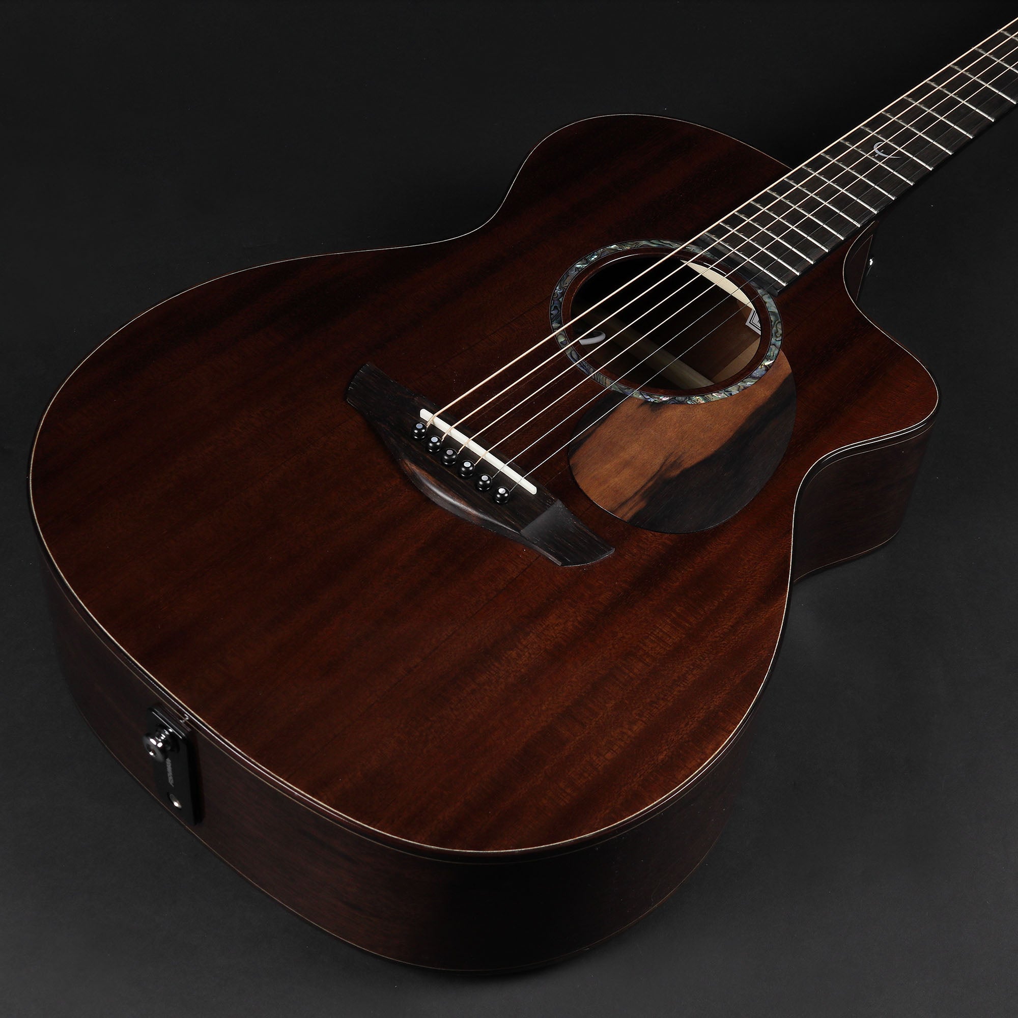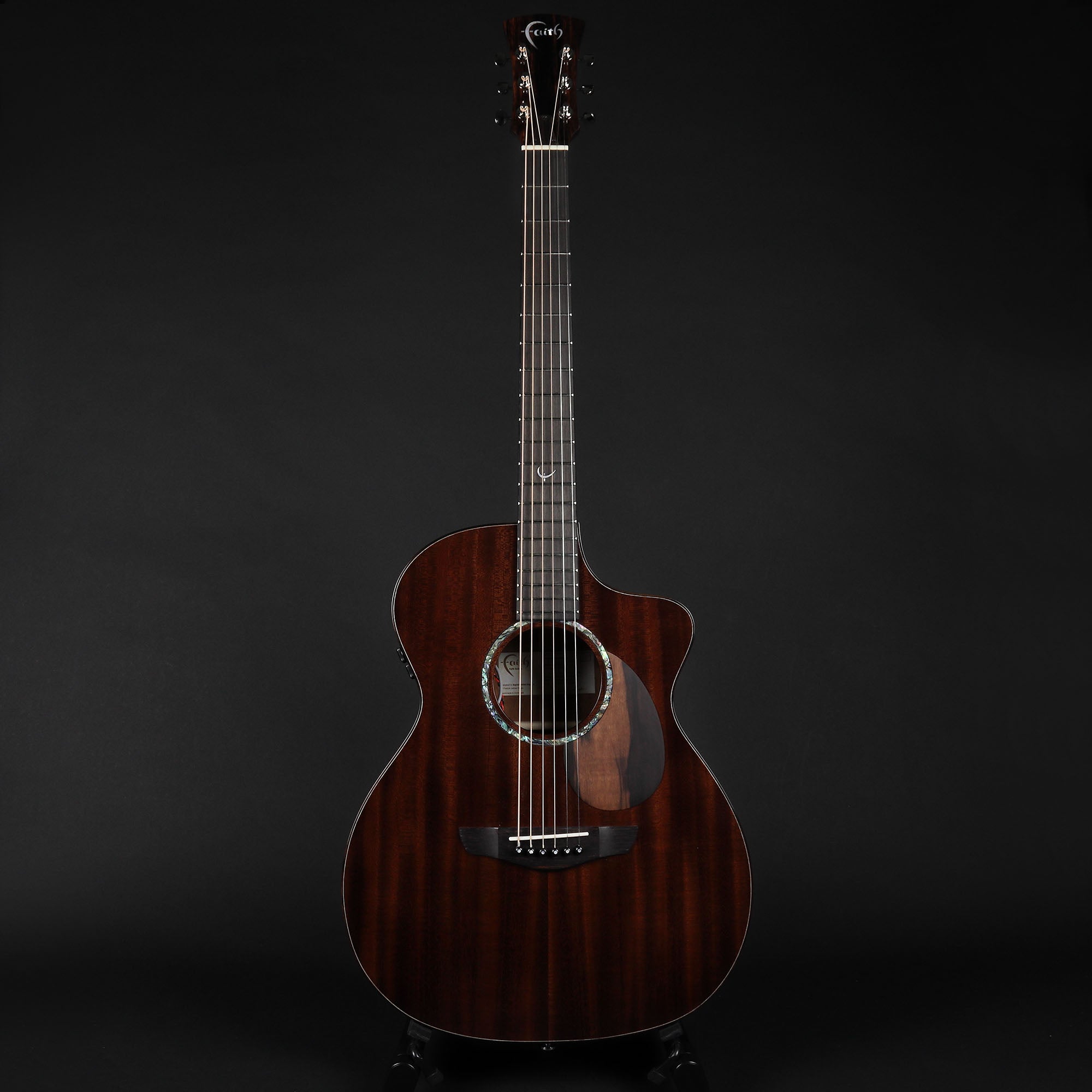 The Dark Roast Legacy FG5 is a distinctive all-mahogany acoustic, crafted entirely from premium African Khaya Mahogany and finished in a rich Dark Roast stain for a beautifully moody aesthetic. Its tone mirrors its looks: warm, rich, and brooding, with pronounced mid-range presence and impressive depth. Built in the Earth body shape—Patrick James Eggle’s refined evolution of his historic Linville design inspired by classic Orchestra Models—the FG5 features a 15" lower bout and elegant contours that make it a true all-rounder. It delivers excellent projection when played unplugged, yet remains comfortable and well balanced for extended stage use by players of any size.