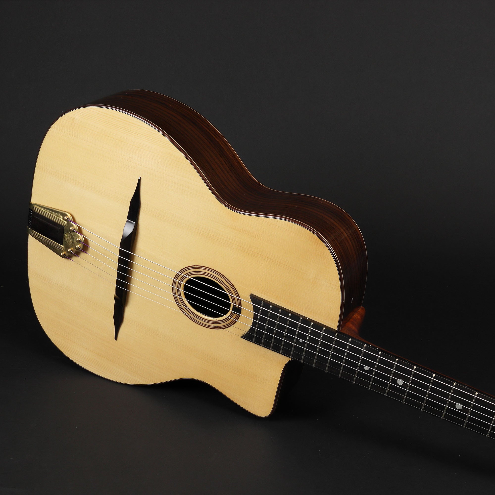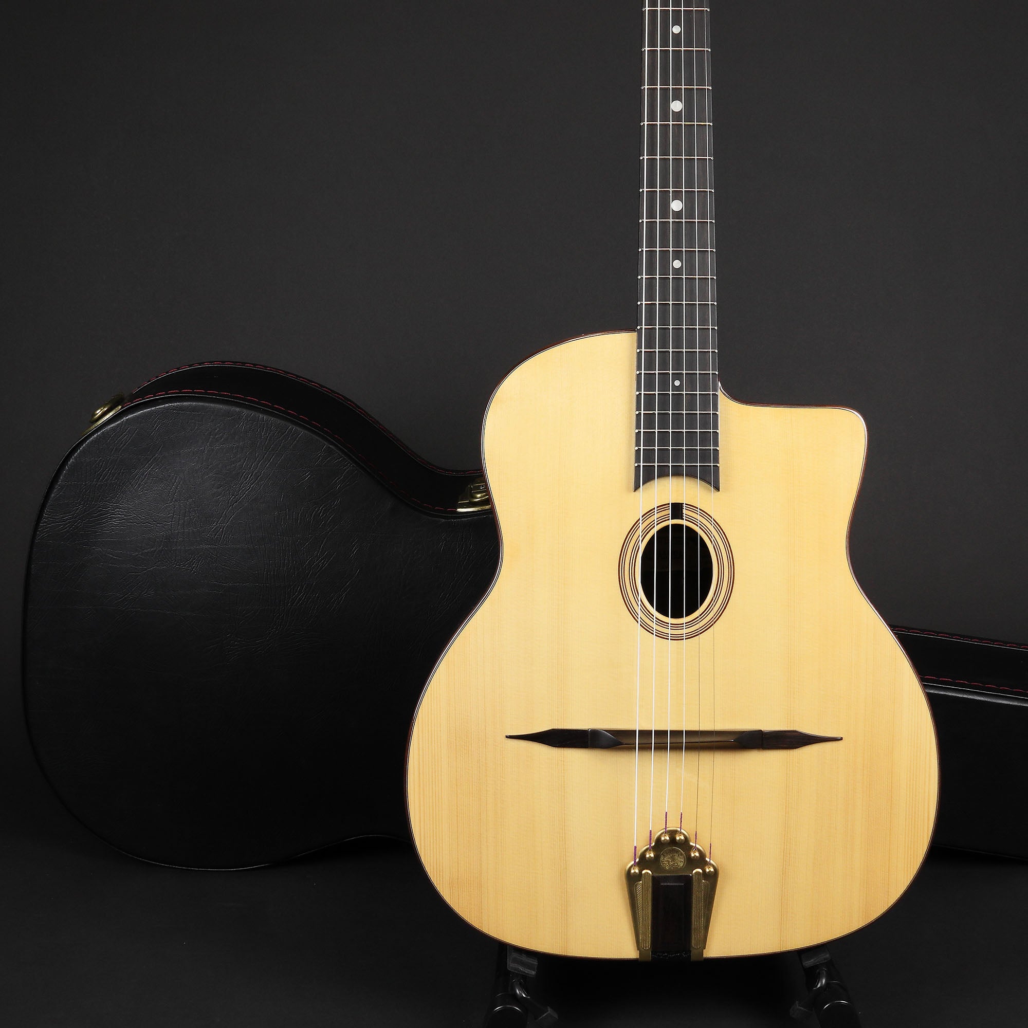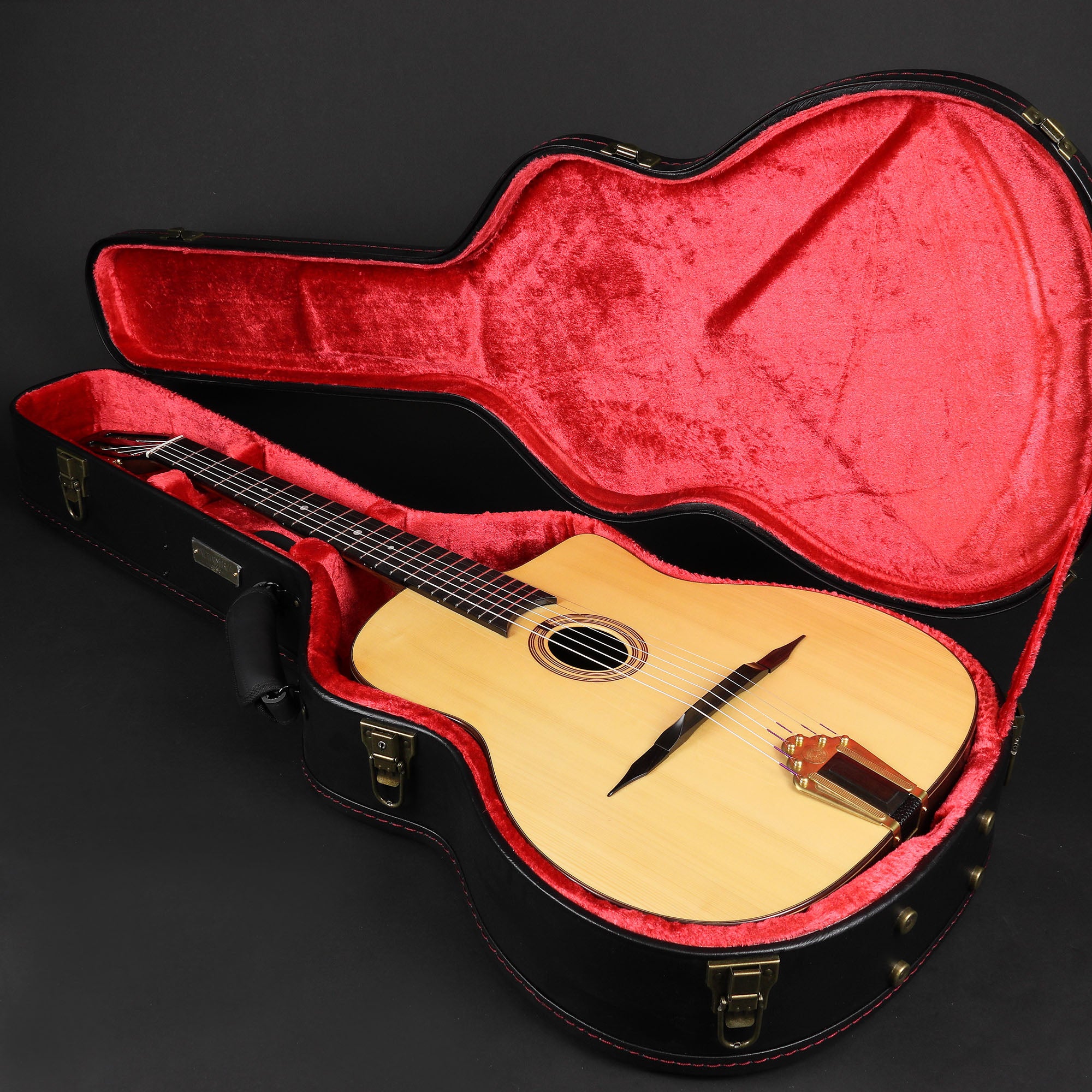 Fantastic value for money Selmer style gypsy jazz guitar from Altamira. Altamira gypsy jazz guitars are built by a small team of highly skilled luthiers led by Hanson Yao - the luthier/owner of the company. The tone and projection of these guitars rivals that of instruments twice the price. Now with a hard case included, what more could you ask for?