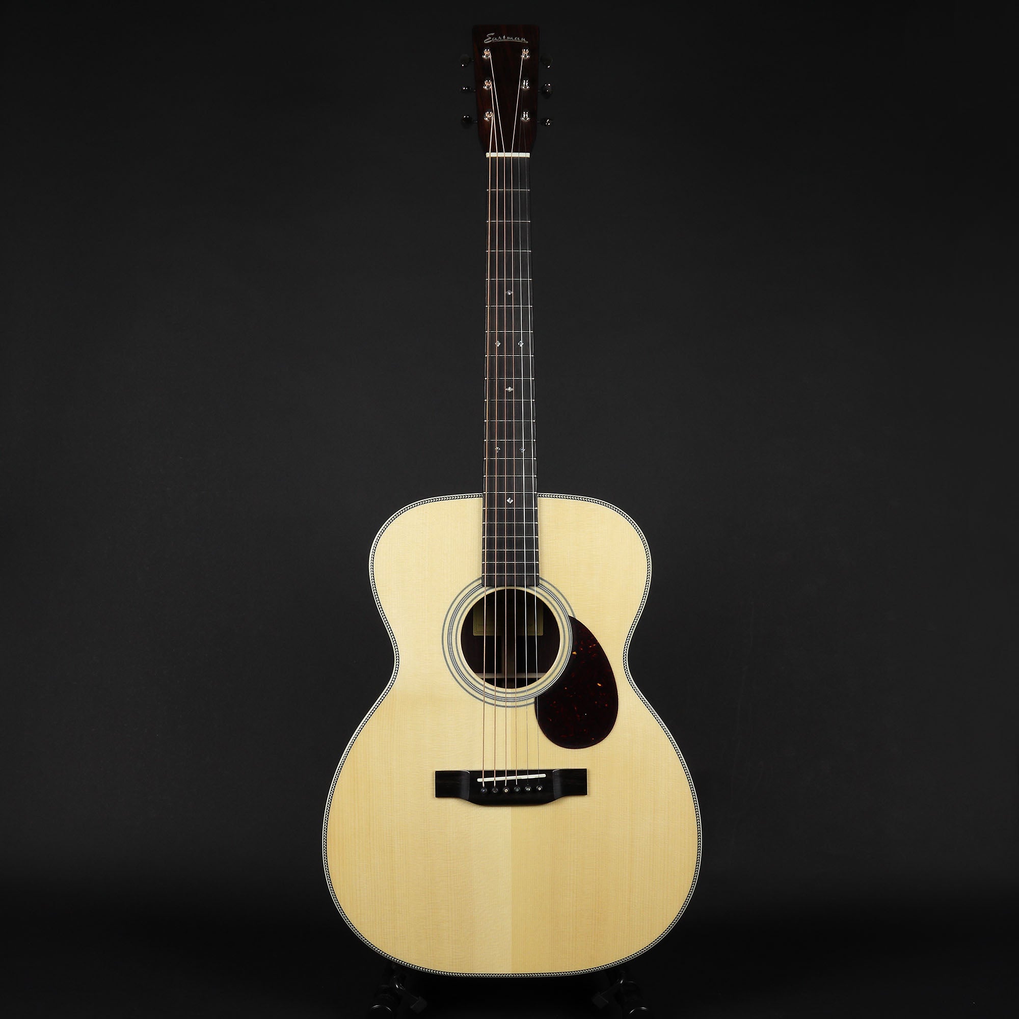 Here we have one of Eastman's most popular models - the stunning E20OM. We're talking about a hand-built guitar with Adirondack spruce top, Indian rosewood back and sides, ebony board and bridge with a tone to rival many guitars at twice the price.