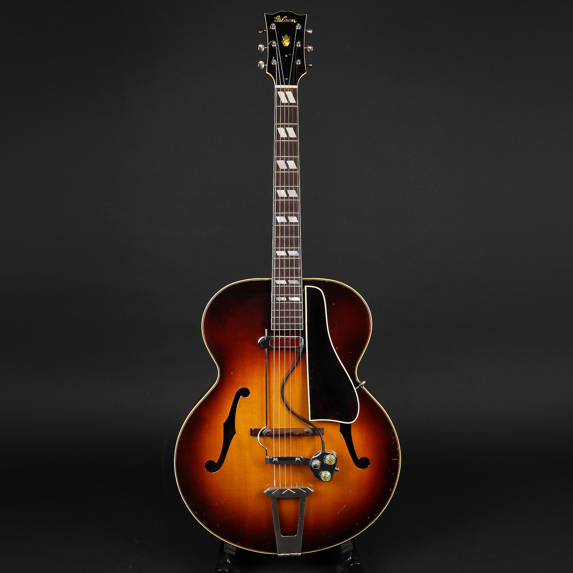 Here we have a fantastic early 1940s Gibson L-7 non-cutaway archtop from the golden era of American jazz guitars. Designed as a professional working musician’s instrument, it delivered much of the flagship Gibson L-5’s performance without its ornate decoration. Featuring a 17-inch body with a hand-carved solid spruce top and carved maple back and sides, it was built for volume, projection, and clarity - qualities that allowed it to cut through big band ensembles before amplification became standard